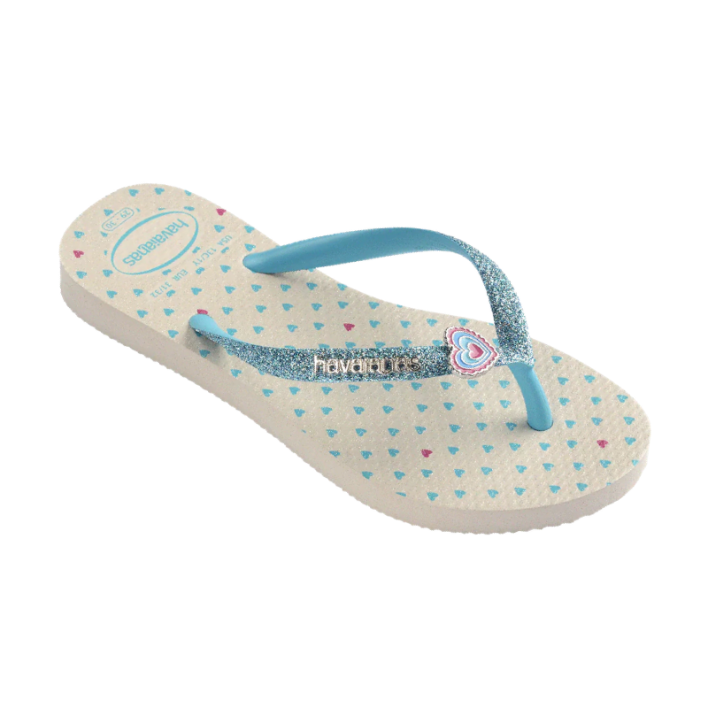 כפכפי אצבע לילדות של הוואינאס (Havaianas) המעוטרים בהדפס לבבות קטנים על המדרס ורצועות גומי עם גימור מנצנץ. הכפכפים מצוידים בסוליית גומי עמידה בעלת טקסטורת אורז למניעת...