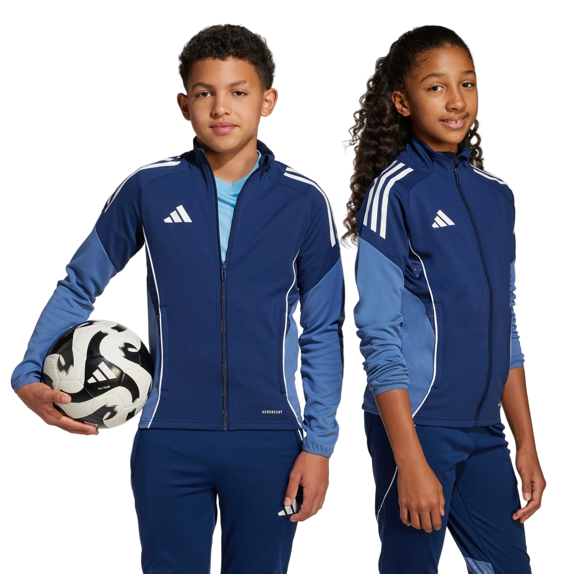 מעיל אימון Tiro 25 Competition לילדים / נוער מעיל צמוד לאימוני כדורגל, עשוי מחומרים ממוחזרים. אל תיתן לאימונים קרים להאט את הקצב שלך. פשוט רכוס...