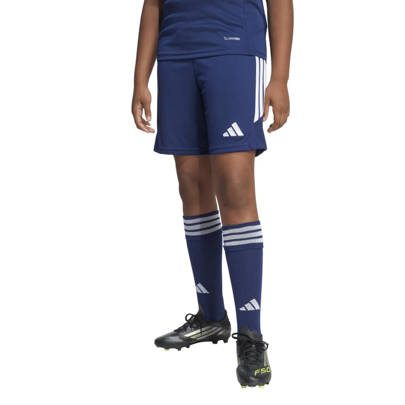 מכנסיים קצרים לילדים של adidas בגוון כחול, בעיצוב ספורטיבי שמתאים לאימוני ספורט ולכדורגל. הגזרה ישרה, עם קו מותן בינוני ואורך קצר, כך שהם יושבים בנוחות ומעניקים...
