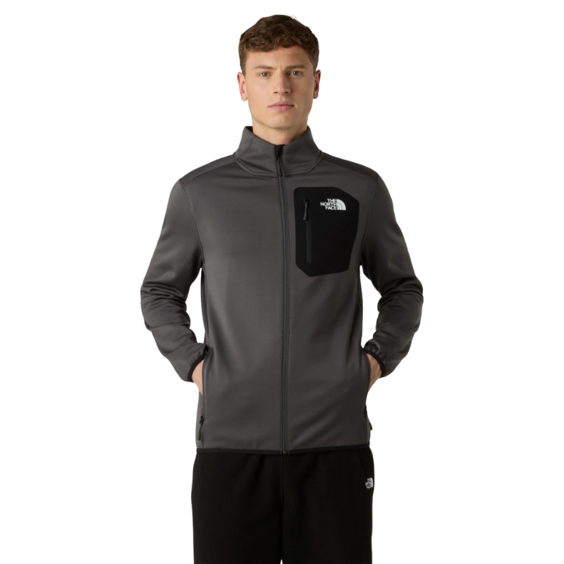 ג'קט טרק לגברים של The North Face — גזרה צמודה, צווארון גבוה ואורך עד הירך עם כיסי צד וכיס חזה עם לוגו בולט. בד סרוג נמתח...