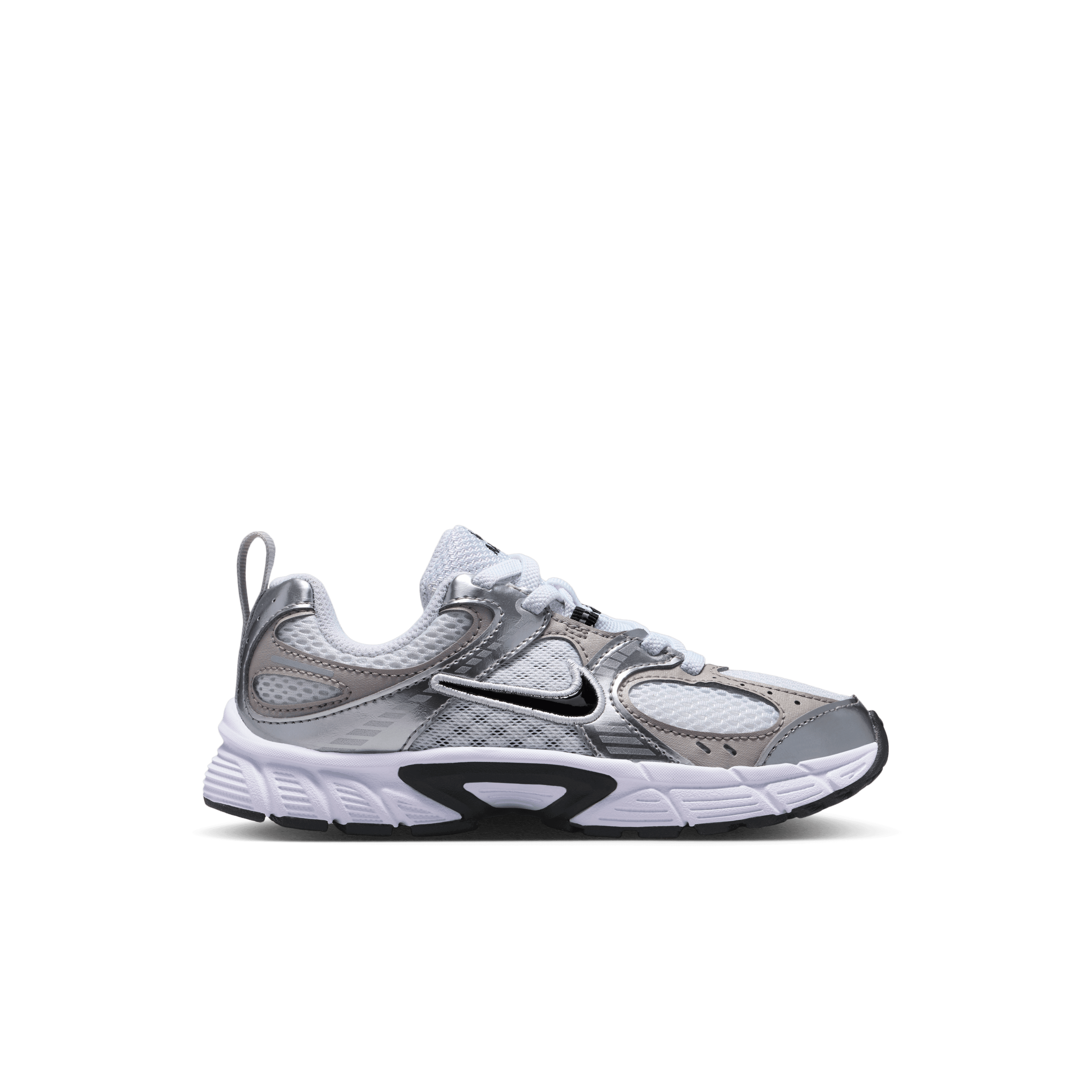 נעלי ספורט V5 RNR של Nike – סניקרס ילדים בסגנון ריצה בצבע אפור, חתך נמוך ועיצוב ספורטיבי. גפה מפוליאסטר נושם עם לוגו דיסקרטי ושרוכים להתאמה; סוליה...