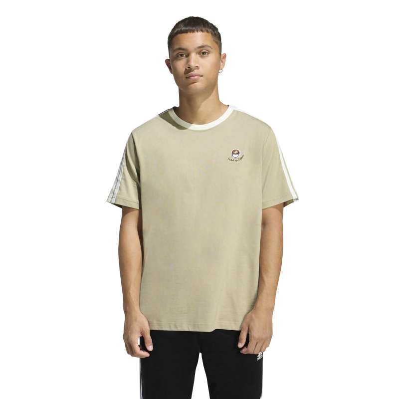 חולצת טי-שירט קצרה לגברים מבית adidas בגוון חום, בגזרה משוחררת עם שרוולים קצרים וצווארון עגול. עשויה 100% כותנה, עם לוגו מודפס במרכז למראה ספורטיבי ונקי.