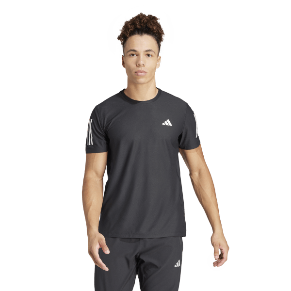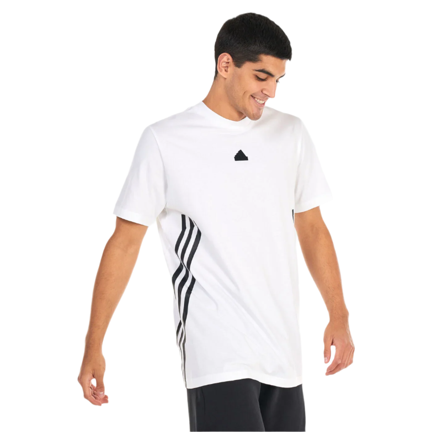 טישרט ספורטיבי לגבר בצבע לבן עם פסי צד שחורים ולוגו קטן בחזה. גזרה רפויה (Loose) עם שרוולים קצרים וצווארון עגול — כיפית לאימון וליום־יום, במיוחד לטניס...