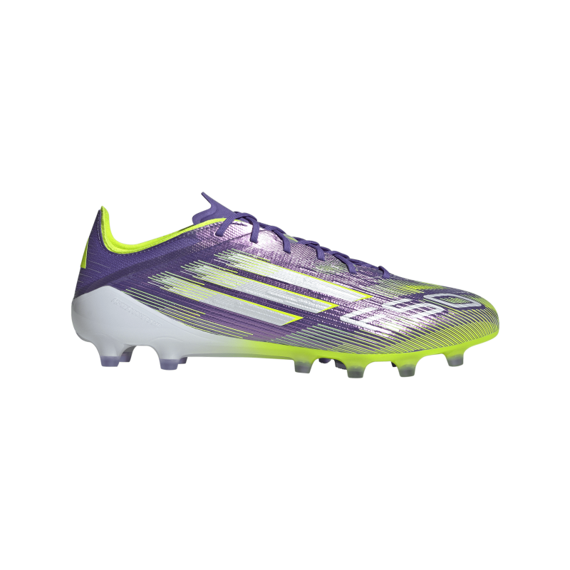 נעלי כדורגל F50 ELITE AG לגברים – סגול/צהוב. דגם מהקולקציה השאפתנית שמביא סטייל מטאלי ומראה נוצץ עם פסים אלכסוניים בכל המשטח. גפה נמוכה עם שרוכים (Laces)...