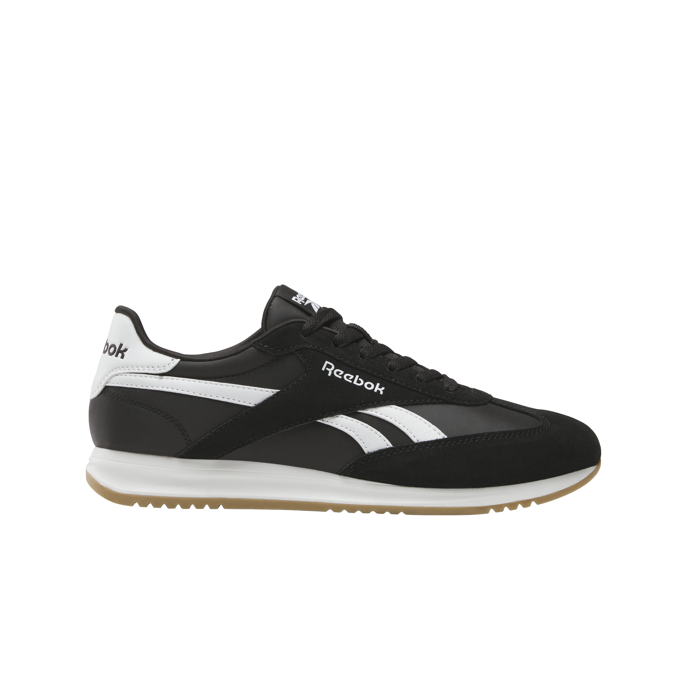 נעלי סניקרס Reebok Classic Leather לגברים - שחור. דגם קלאסי ונקי עם גפה מעור, סגירת שרוכים, קרסול נמוך וסוליה שטוחה שמתאימה לשימוש יומיומי בקז'ואל. לוגו טקסט...