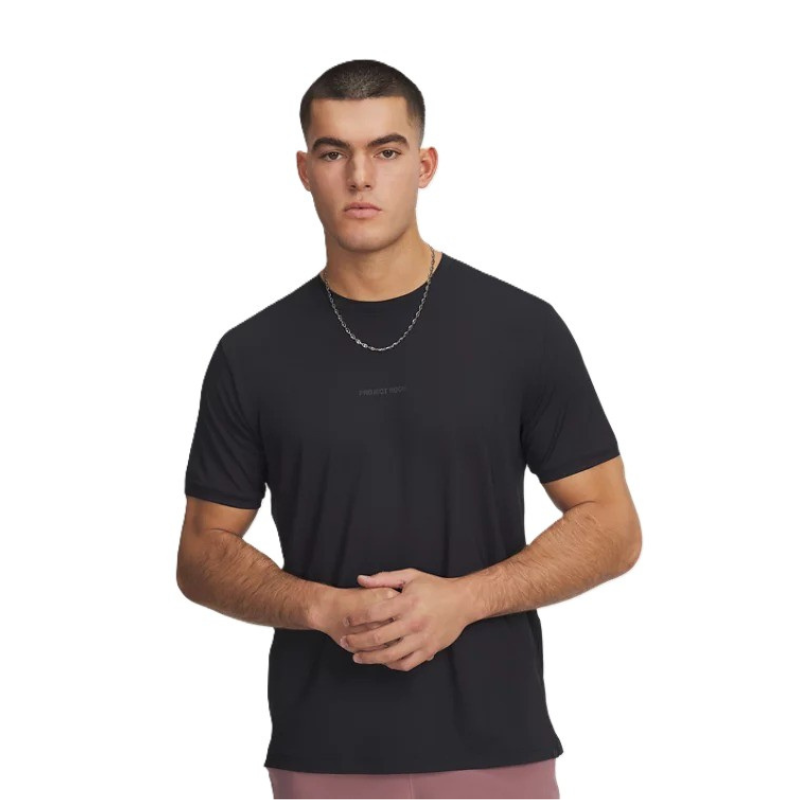 גופיית אימון נשית בשחור — קלאסיקה את'לג'ור מבית Under Armour. טופ טנק קרופ עם גזרה צמודה (fitted) וצווארון עגול, ללא שרוולים — מושלמת לאימוני HIIT, ריצה...