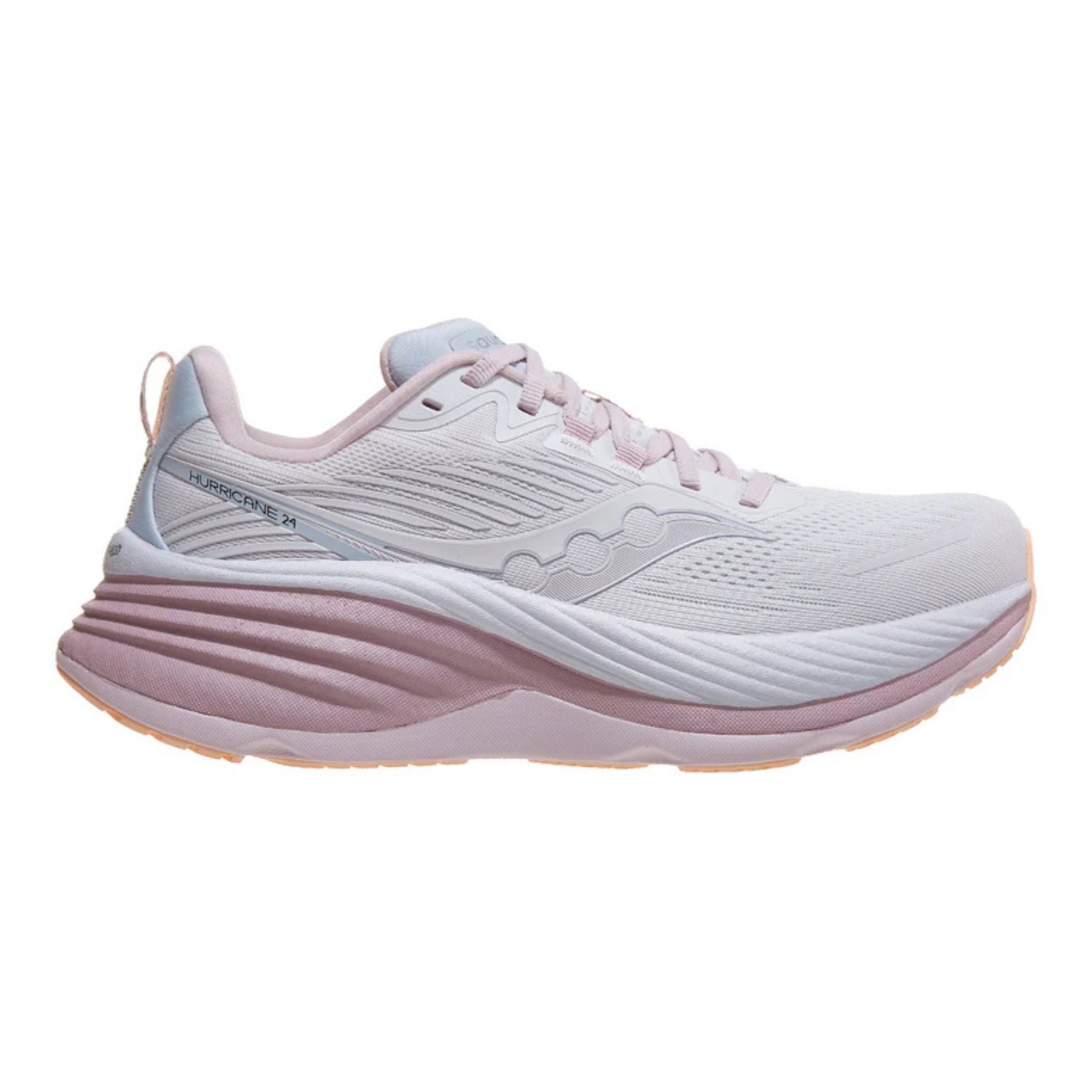 נעלי ריצה מקצועיות HURRICANE 24 לנשים — לבן עם נגיעות ורוד פסטלי. סניקרס ספורטיבי בעיצוב אקטיב-וור: גפה מפוליאסטר אוורירי שמאפשר נשימה בזמן ריצה, גזרת עקב נמוכה...