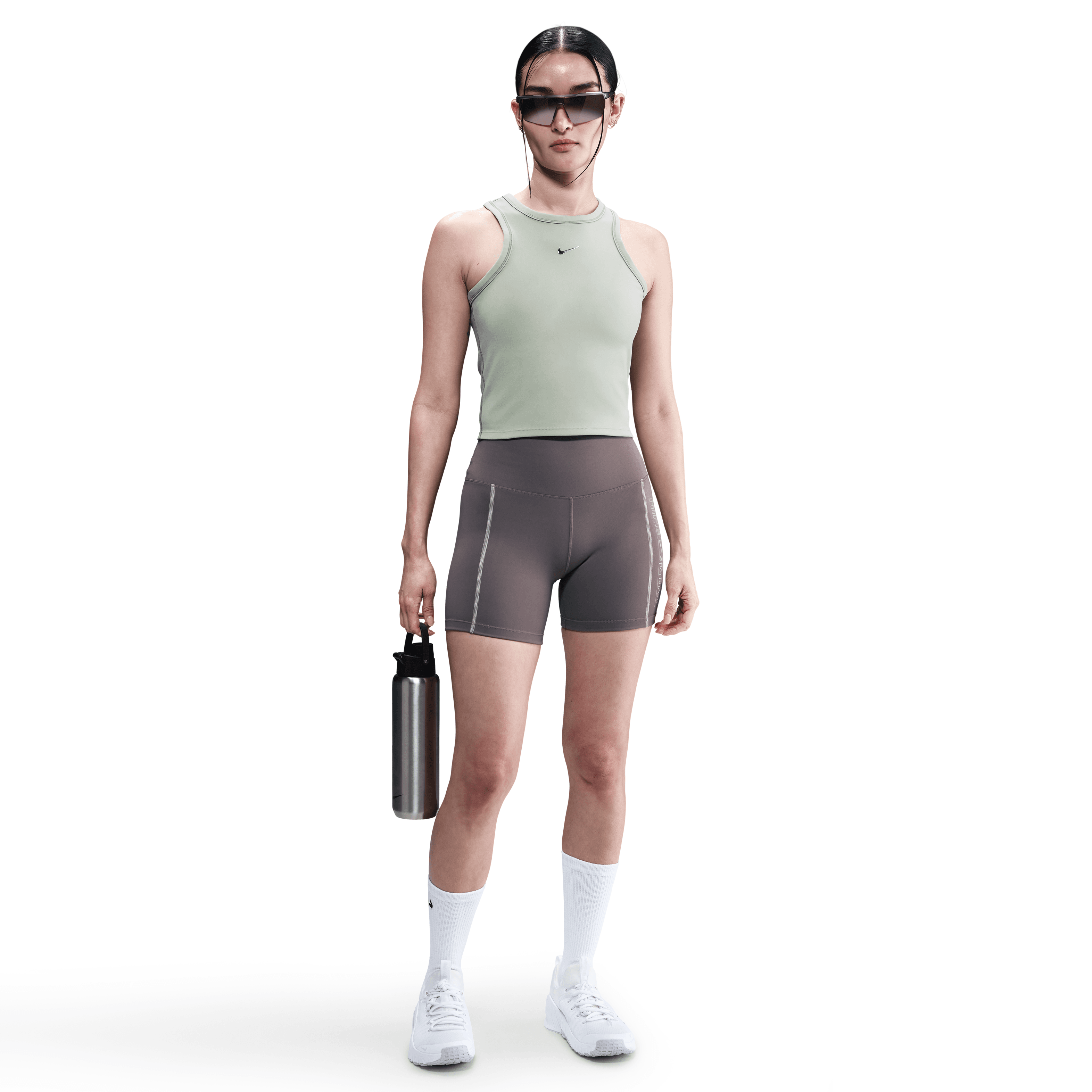 גופיית ספורט נשים בסגנון קרופ — טנק טופ קצר עם מחשוף עגול וגזרה רחבה ונינוחה. ללא שרוולים, עיצוב מינימליסטי ופשוט (ללא כפתורים, ללא כיסים, ללא קרעים),...