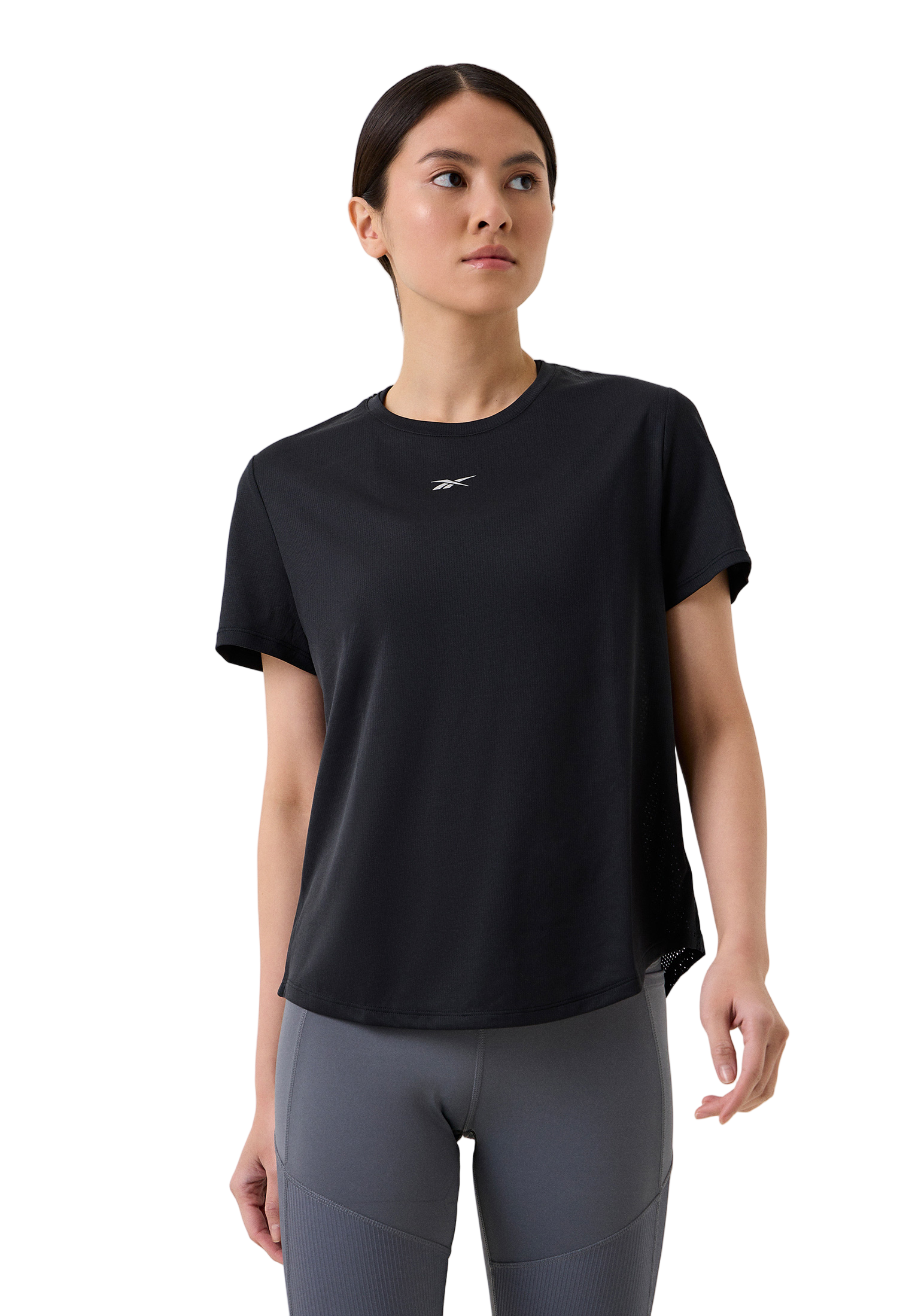 חולצת ספורט קצרה לנשים בגזרה רחבה ובסגנון בייסיק — טי־שיirt עם צווארון עגול, שרוולים קצרים וישרים ואורך רגיל שמתאים לאימון וליום־יום. עשויה כותנה בסריגה, ללא מתיחה,...